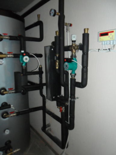 Az itt látható berendezés egy 10 szobás panziót lát el meleg vízzel. Az 1-2 fürdőszobás lakásokhoz természetesen kisebb berendezés is elegendő.