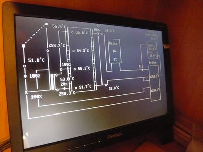 Monitoron figyelhető a külső és belső hőmérséklet, a tartály különböző szintjén és a napkollektorokban lévő hőfok.
