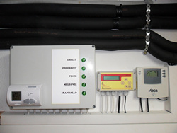 A vezérlő elektronika feladata, hogy felügyelet nélkül, automatikusan működtesse a napkollektoros rendszert, gázkazánt, gépészetet, szivattyút, váltószelepet